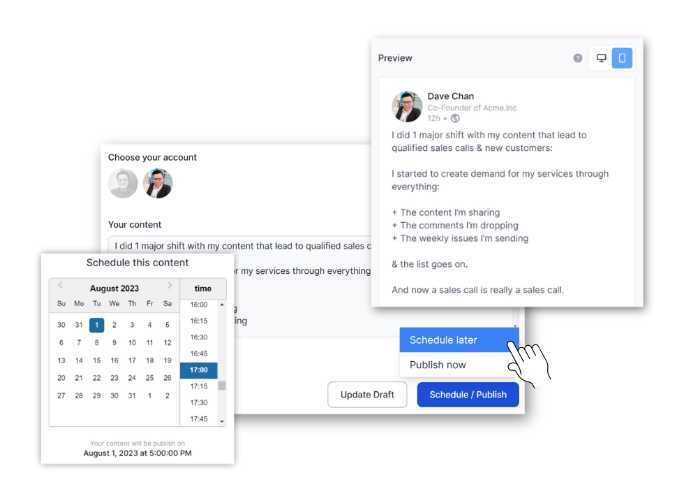 Effortlessly plan and schedule your LinkedIn, X (Twitter) & Facebook posts across multiple accounts. Stay consistent, save time, and reach your audience when it matters most.